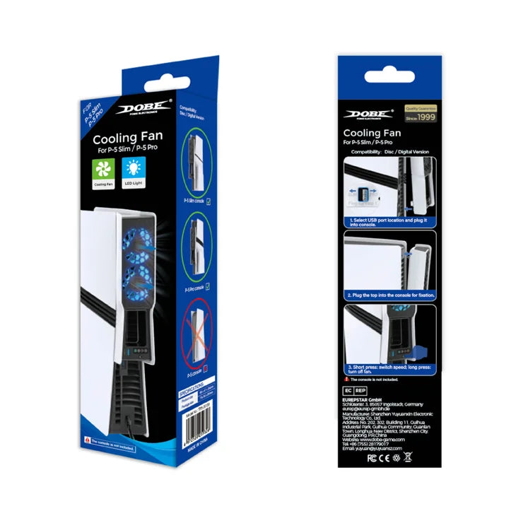 DOBE FOMIS ELECTRONICS TP5-35159 For Sony PlayStation 5 Pro/5 Slim Cooling Fan Dual Fan Design Smart Temperature Control - White